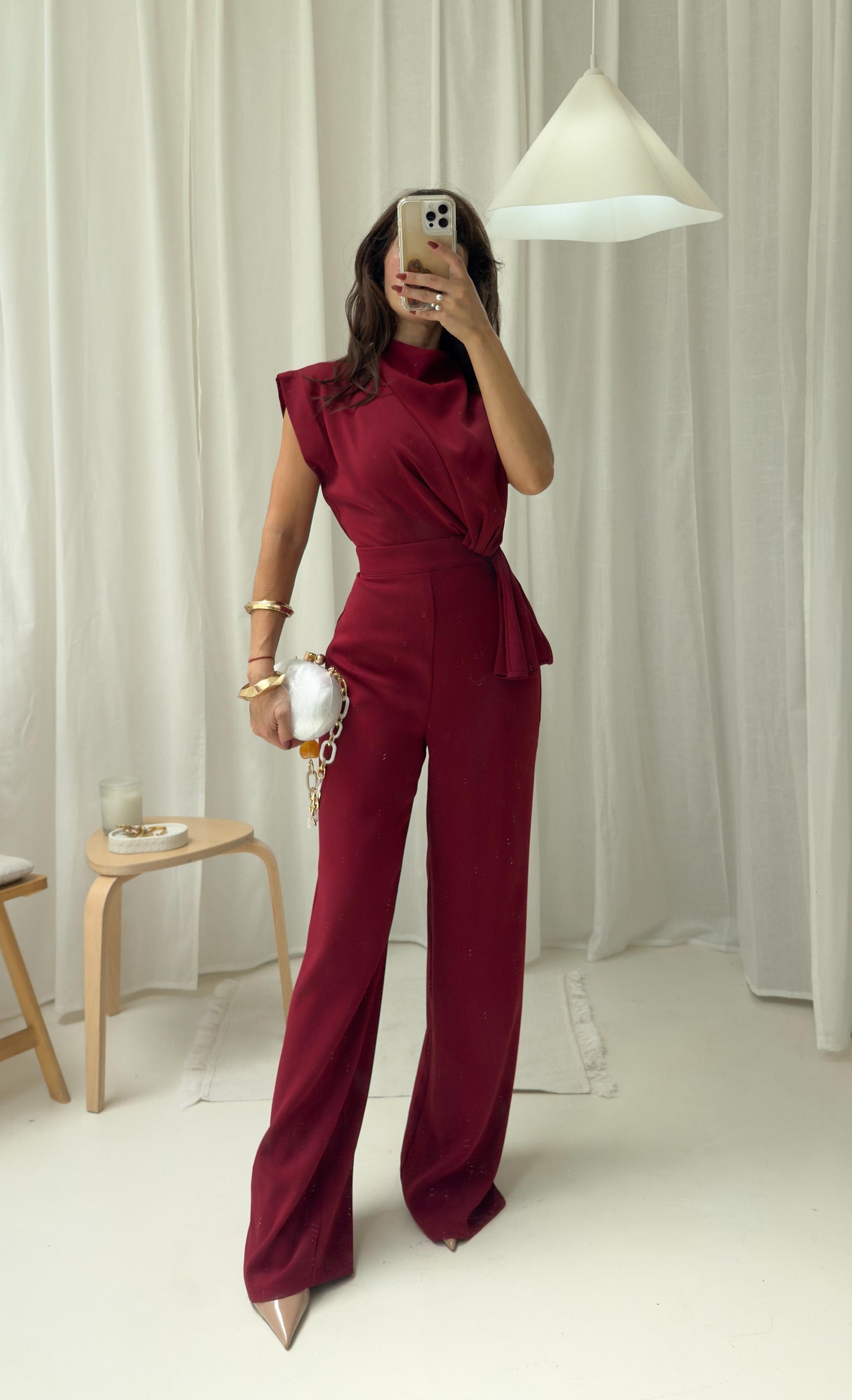Palazzo cuello alto,cierre en la parte trasera , tiro de pantalon alto.