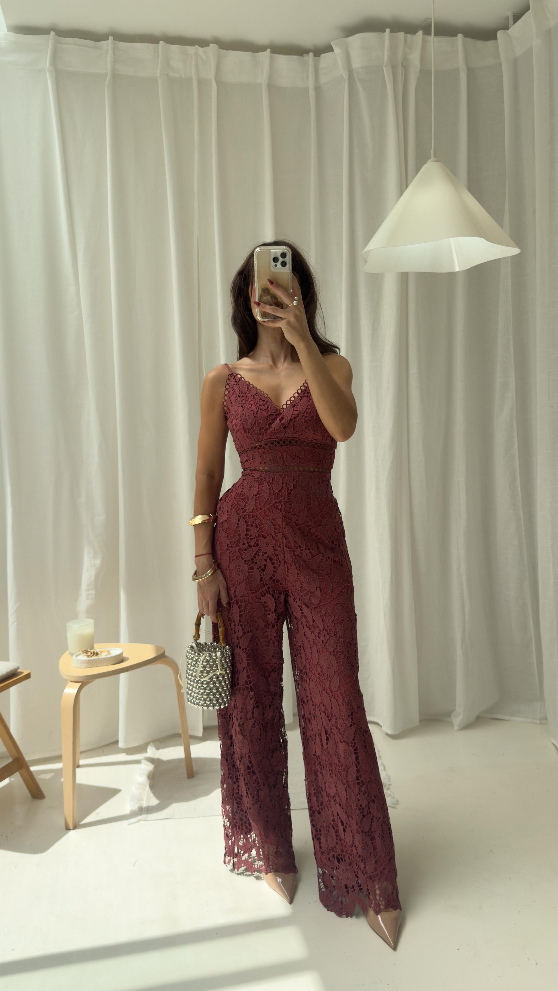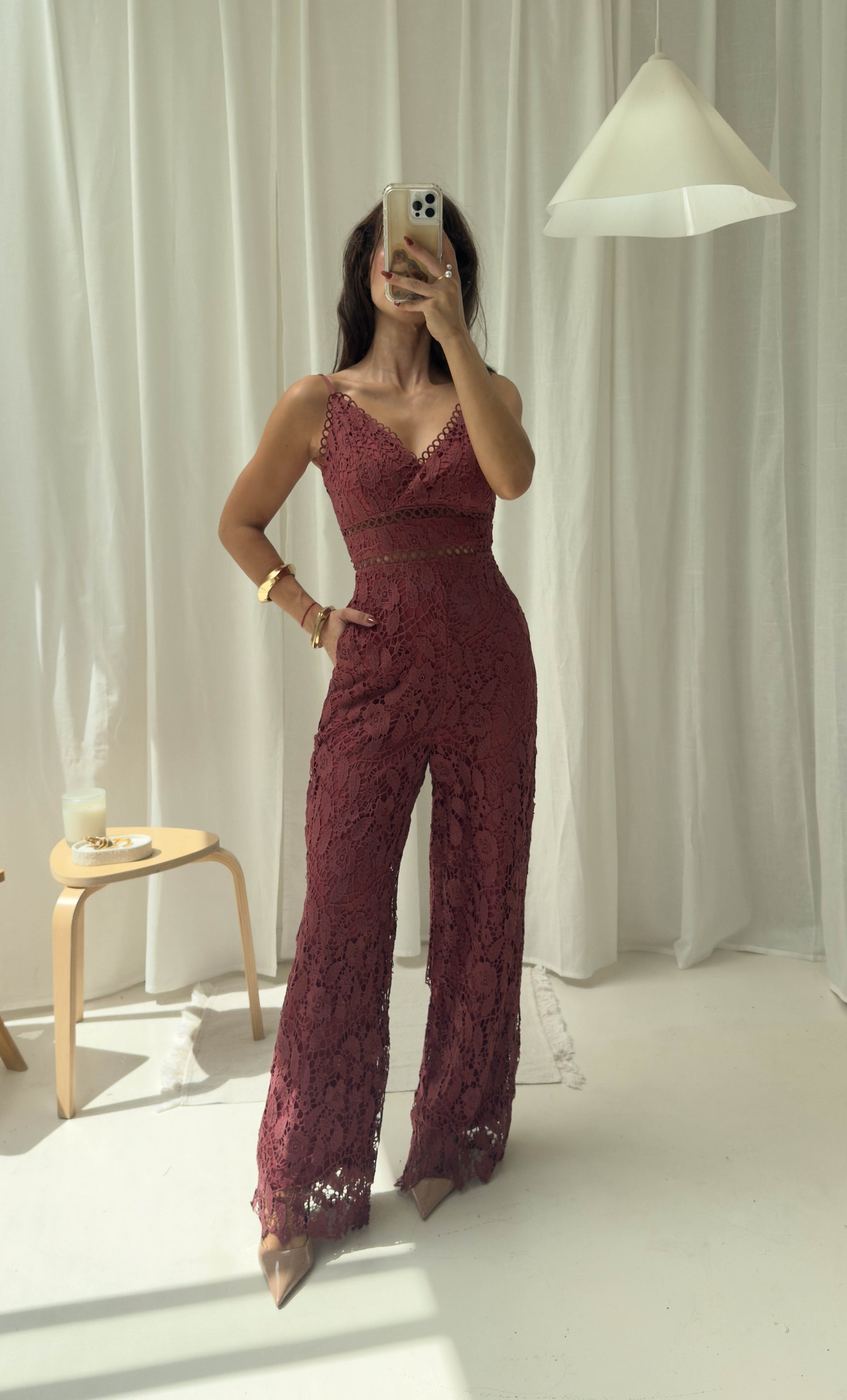 Palaxo cuello V tirante , confeccionado en encaje crochet