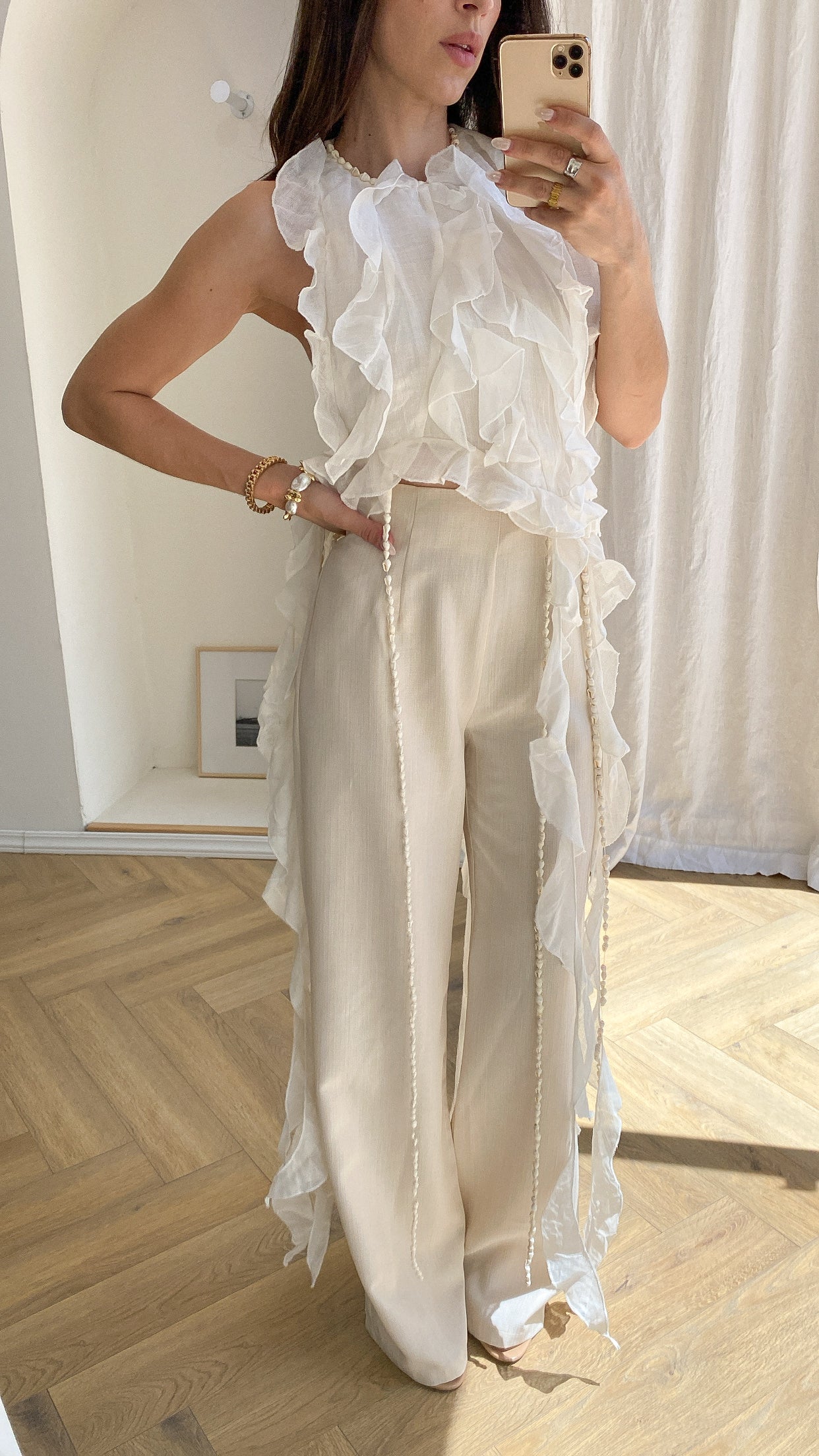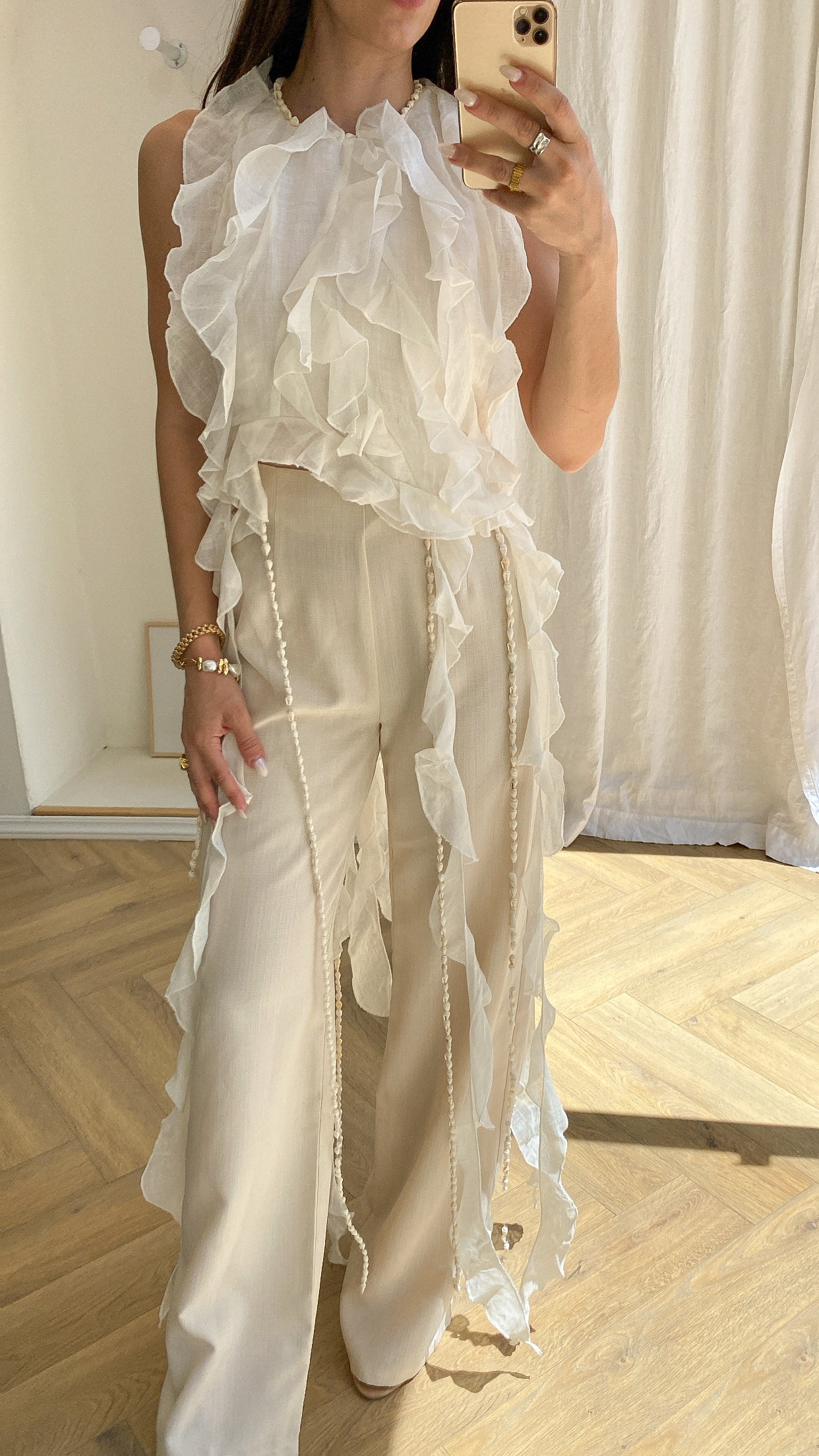 Set pantalon y top. Top con detalles de inspiración tropical como conchas y olanes.